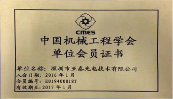 熱烈祝賀深圳市亞泰光電正式成為中國機械工程學會單位會員