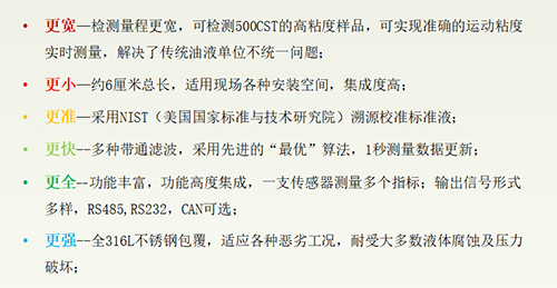 目前市場大部分油品在線監(jiān)測裝置檢測范圍小、精度低,難以滿足準確、高效的市場監(jiān)測要求。亞泰在線油液監(jiān)測系統(tǒng)主要技術(shù)指標: