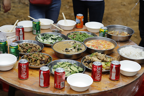 中午時分,年會開始了吃貨環(huán)節(jié),大家自己動手、豐衣足食,各團隊將自帶的食材及酒水、飲料等歸集一起準備各自小組的午餐,各組隊成員有的切菜、有的洗菜,有的拾材,有的炒菜,一盤盤香噴噴、美味可口的家常菜西紅柿炒蛋、虎皮尖椒、年年有魚、肉沫茄子等美味可口的菜肴很快就做好并迅速被一掃而光,其樂融融,吃得好、喝得好,玩得好,好不熱鬧。