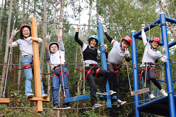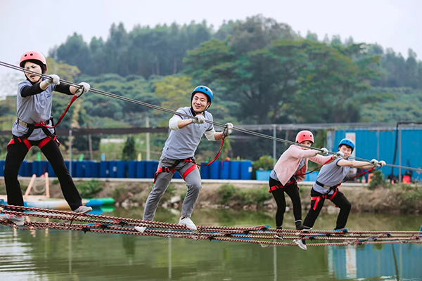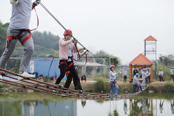 野炊結束午間休息后,年會進入到下半場,下午兩點開始,所有隊員在教練的指導下抖擻精神、重新整裝再出發(fā),開始叢林穿越、高空溜索、飛奪瀘定橋等項目,隨著高空溜索、飛奪瀘定橋等項目的展開,各個小組發(fā)揮各自的優(yōu)勢努力完成每一個項目,每個項目的進行和完成極大的鍛煉了團隊成員的堅強意志、增強了大家的團隊凝聚力和整體向心力,同時每一個人也感受到了團隊合作與溝通的重要性。