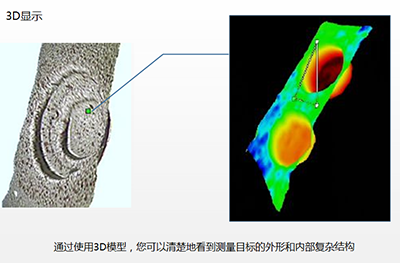3、立體顯示;通過(guò)使用3D模型,可以清楚的看到測(cè)量目標(biāo)的外形和內(nèi)部復(fù)雜結(jié)構(gòu)。