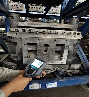 客戶現(xiàn)場主要看輪轂磨具內(nèi)部通道的堵塞、脫落、毛刺情況,管通道孔徑13mm, 呈環(huán)狀分布,進口5cm的位置,有雙向的分支通管,亞泰光電MIE高清系列內(nèi)窺鏡的探頭進入導管后,需要分別從兩端進入,本次演示時,沒有2.8mm360°轉向的演示設備,需要手動旋轉管線,預判轉向方位,清晰度方面客戶對MIE內(nèi)窺鏡非常認可。導管內(nèi)部多處焊接的位置,實測時能明顯看見內(nèi)部的焊接堵塞,還有部分脫落,放置貨架的模具,內(nèi)部有大量灰塵、蟲子等多余物。客戶方現(xiàn)場相關負責人表示他們前面找了很久類似的內(nèi)窺鏡產(chǎn)品,對亞泰光電2.2mm內(nèi)窺鏡產(chǎn)品效果很認可,當即表示了進一步合作的意向。