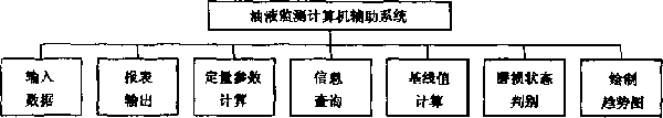 典型的油液監(jiān)測(cè)計(jì)算機(jī)輔助系統(tǒng)由數(shù)據(jù)輸入、報(bào)表輸出、信息查詢、定量參數(shù)計(jì)算、基線值計(jì)算、磨損狀態(tài)判別趨勢(shì)圖的繪制等模塊組成,系統(tǒng)結(jié)構(gòu)如 圖1.1所示。