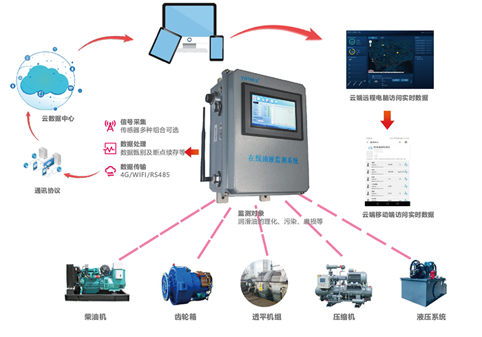 解決方案:從油液在線監(jiān)測出發(fā)進行機械設備故障診斷, 能夠較為準確地預測故障的原因及部位, 更全面地監(jiān)測設備的運轉情況, 并能利用早期預報及時發(fā)現(xiàn)和排除設備的故障隱患, 減少損失。