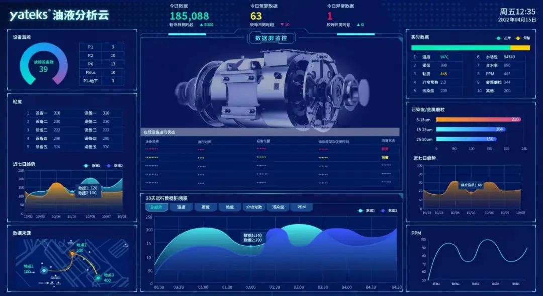 亞泰光電油液監(jiān)測系統(tǒng)通過搭載高精度傳感器和物聯(lián)網(wǎng)技術(shù),實(shí)時(shí)采集油液的溫度、粘度、含水量、金屬顆粒濃度等關(guān)鍵指標(biāo),結(jié)合AI算法進(jìn)行動(dòng)態(tài)分析,精準(zhǔn)捕捉設(shè)備異常信號(hào)。無論是發(fā)動(dòng)機(jī)的早期磨損、液壓閥的微小泄漏,還是油液氧化導(dǎo)致的性能下降,系統(tǒng)都能在故障發(fā)生前發(fā)出預(yù)警,讓運(yùn)維從“被動(dòng)搶修”轉(zhuǎn)向“主動(dòng)防護(hù)”。