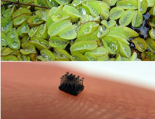 它就是Salvinia molesta,是一種原產于南美洲的浮蕨。它的葉子非常疏水,并且淹沒在水中時保留了一個空氣袋,這要歸功于細小的防水毛發。