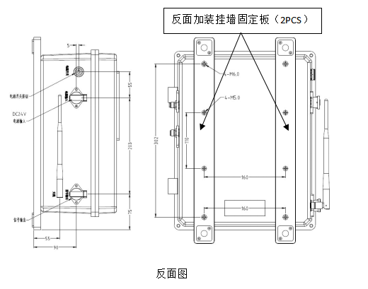 監(jiān)測箱內(nèi)部結(jié)構(gòu)組成:磨粒傳感器+清潔度傳感器+含水率傳感器+粘度傳感器+微量水傳感器+介電常數(shù)等,用戶可根據(jù)不同需求進(jìn)行功能選配。監(jiān)測箱外觀結(jié)構(gòu)組成:監(jiān)測箱主體(1PCS)+掛墻固定板(2PCS)+天線。